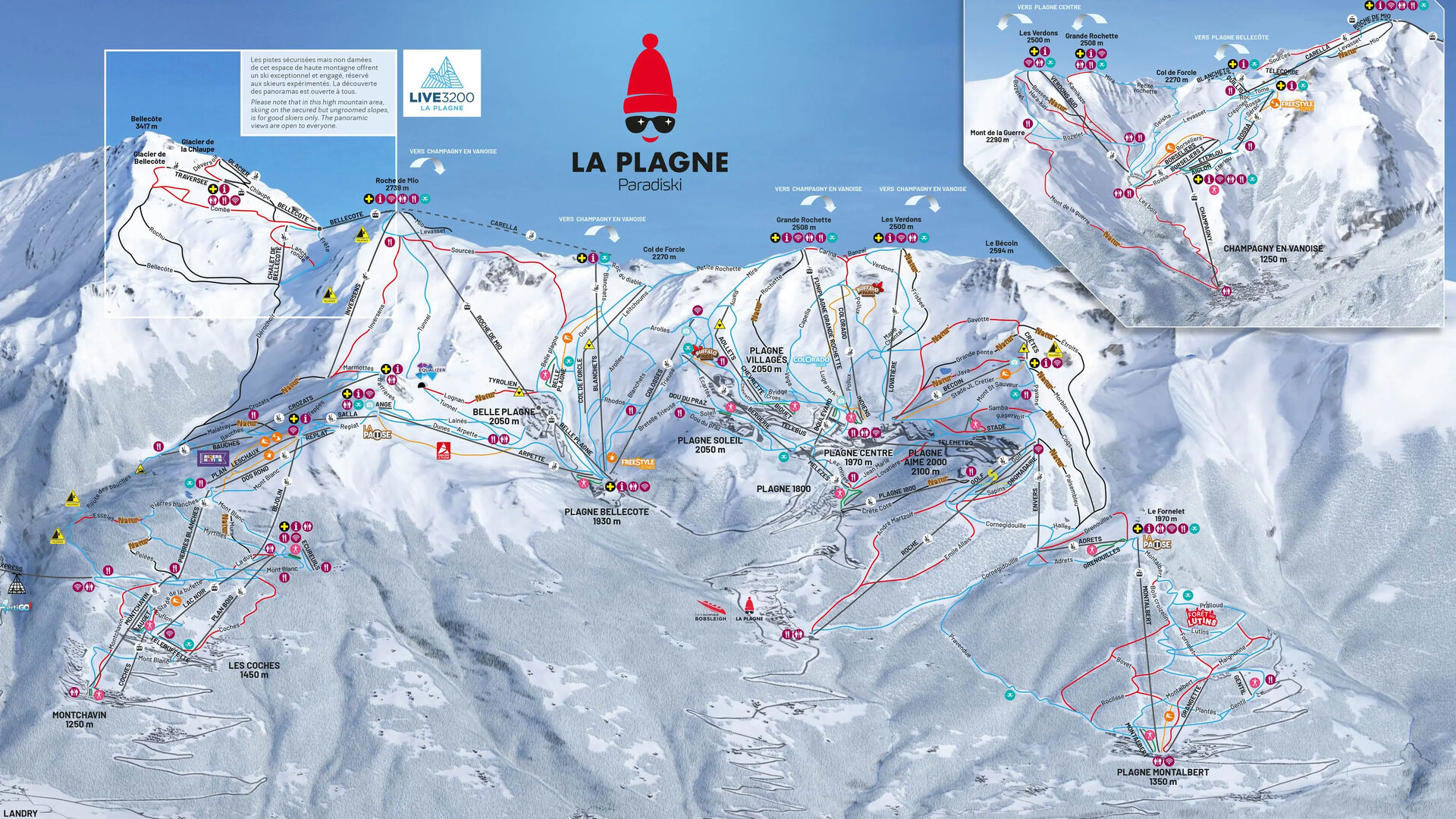 La Plagne tvoří spolu s Les Arcs a Paisey Vallandry lyžařský areál Paradiski, který nabízí 425 kilometrů sjezdovek. Všechny tři lyžařské oblasti lze navštívit s jedním skipasem a jsou propojeny lanovkou Vanoise Express.