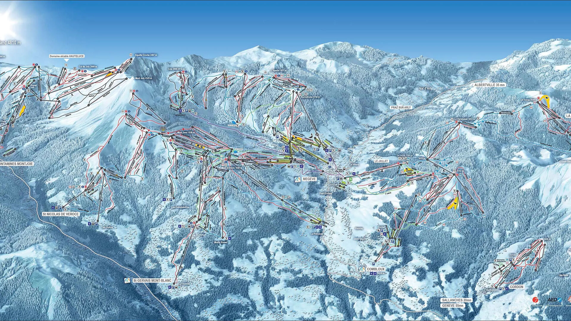 Pokud to někomu nestačí, může se přesunout na sjezdovky v Megève nebo Combleux, které jsou s tímto lyžařským areálem přímo propojené. Celkem se v oblasti Évasion Mont Blanc nachází 220 sjezdovek (445 kilometrů sjezdovek a 107 vleků).
