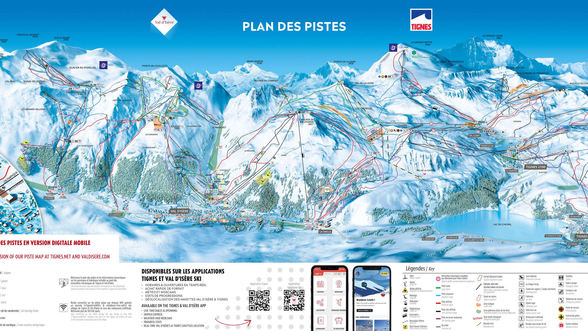 Nejrychleji se do lyžařského areálu na ledovci Grande Motte dostanete podzemní lanovkou. Vstup do oblasti Col du Palet je možný přes sedačkovou lanovku Tichot a vleky Grattalu. Z Tovière se dostanete do sousedního lyžařského areálu Val d'Isère, kde na lyžaře čeká dalších 150 kilometrů sjezdovek. Tignes a Val d'Isère společně tvoří lyžařský areál Espace Killy, takže s jedním skipasem můžete lyžovat v obou areálech.