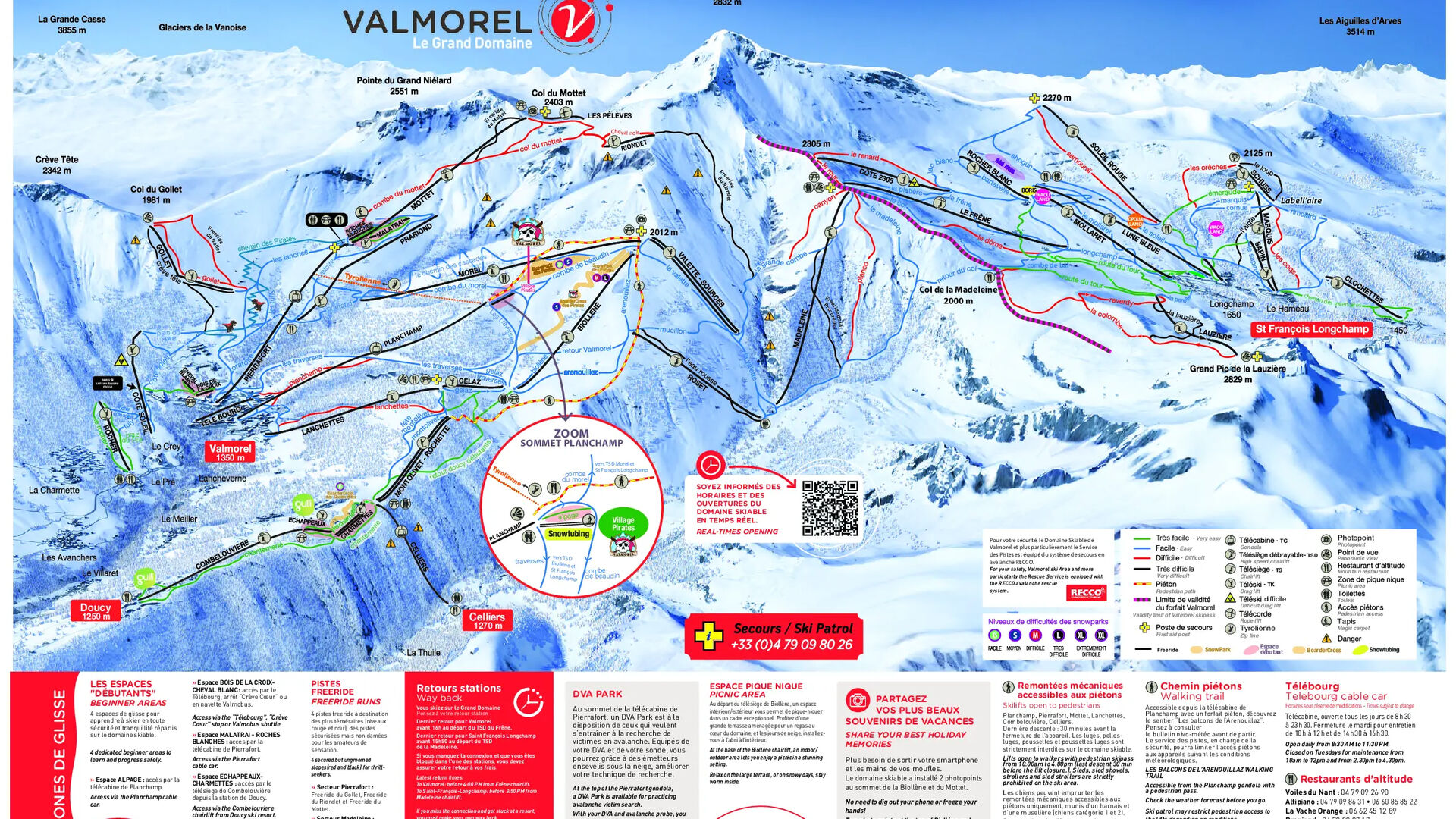 Díky rozmanitým sjezdovkám – čtyřem náročným, devíti středně obtížným a 40 velmi snadným a snadným sjezdovkám – se v Valmorelu cítí dobře jak začátečníci, tak i zkušení lyžaři. Zatímco zkušení lyžaři si mohou vyzkoušet náročné sjezdovky na Col de la Madeleine a Col du Mottet, začátečníci si v „Stadionu Cheval Blanc“ procvičují své první oblouky. Tato oblast je speciálně navržena pro začátečníky.