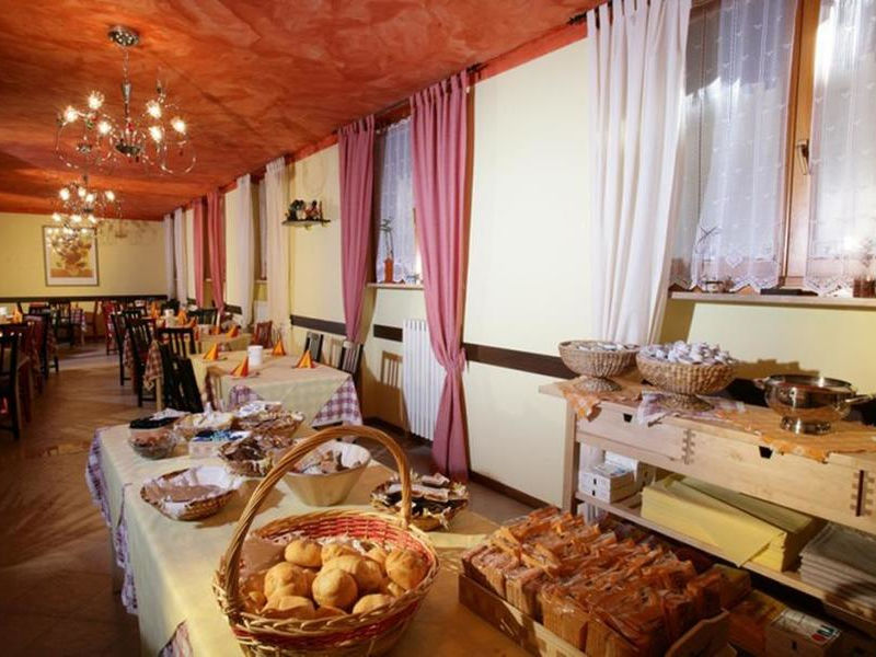 Vybavení hotelu: recepce, restaurace, bar, společenská místnost s TV, herna, úschovna lyží, Wi-Fi na recepci (cca 5 EUR/pobyt), parkovací stání (zdarma, dle dostupnosti),