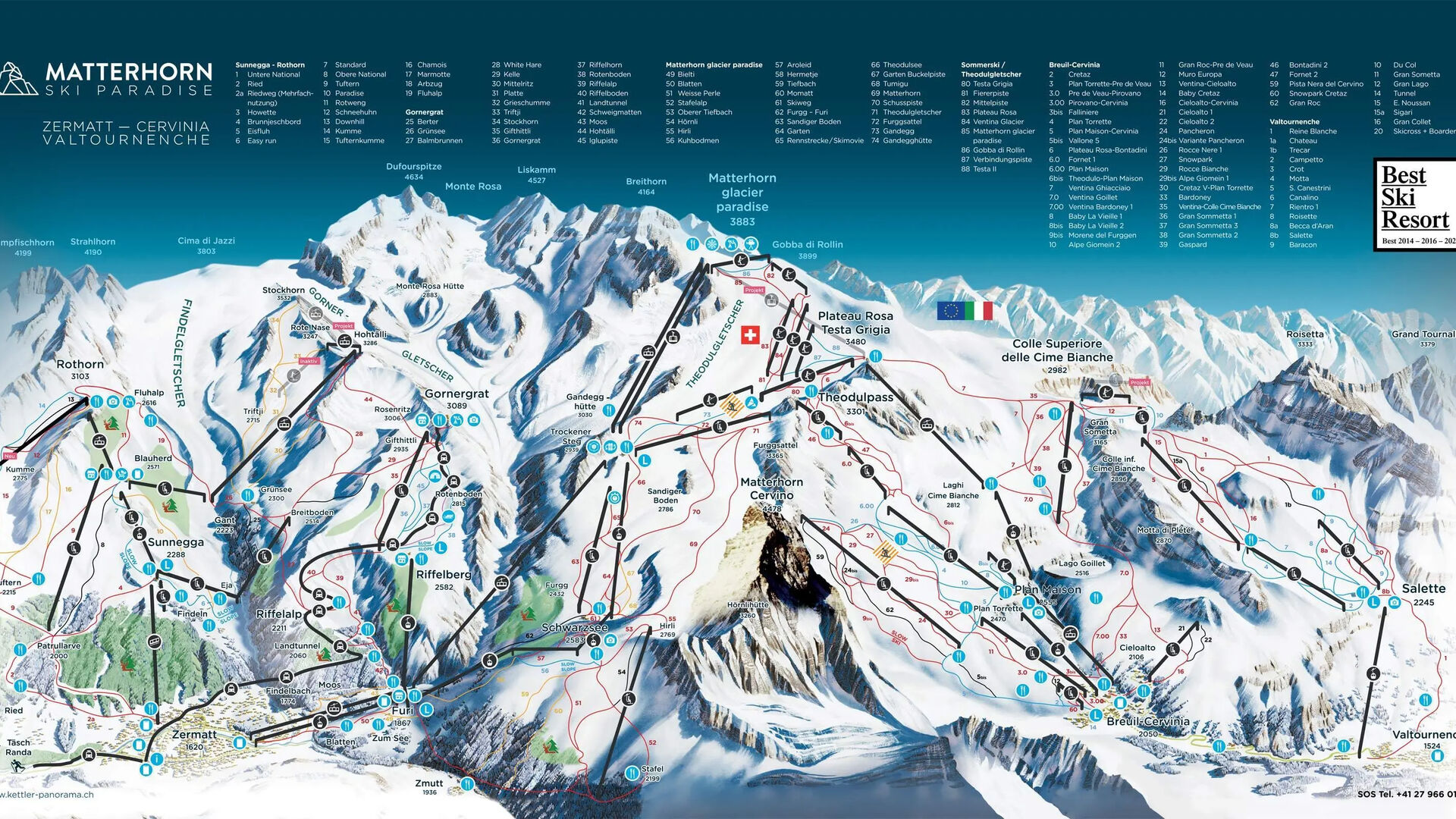 Lyžařské středisko Breuil-Cervinia-Valtournenche patří společně se švýcarským lyžařským střediskem Zermatt k největším a nejspolehlivějším lyžařským areálům v Alpách: Matterhorn Ski Paradise. Celkem 360 km sjezdovek a 52 vleků zajišťuje neomezenou lyžařskou zábavu v sezóně od října do května. V samotném Breuil-Cervinia-Valtournenche se nachází 20 vleků, které obsluhují téměř 160 km sjezdovek.