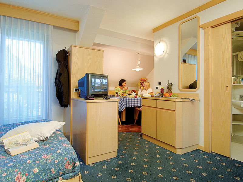 Nachází se v klidném a prosluněném místě asi 500m od centra. Kabinová lanovka Belvedere 50m.