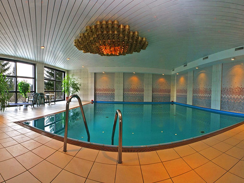 Pro relaxaci je zde příjemné wellness (80 m²) - pro děti od 12 let, parní lázeň, sauna, relaxační místnost, panormatická sauna, whirpool. Vnitřní bazén (10 x 6 m) s panoramatickým oknem.