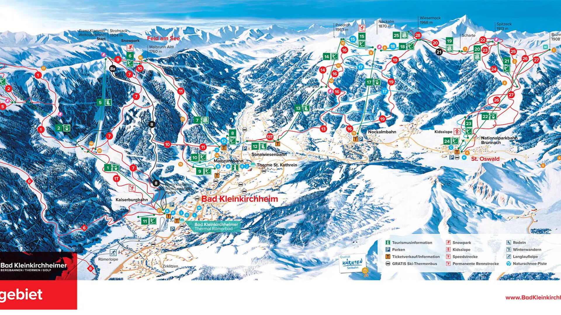 Lyžařská zábava v fascinující přírodní krajině: To je lyžařské středisko Bad Kleinkirchheim s 103 km sjezdovek v Korutanských Nockberkách. Město Bad Kleinkirchheim je lyžařskou domovinou legendárního olympijského vítěze Franze Klammera, po něm je také pojmeněn závod FIS ve středisku.