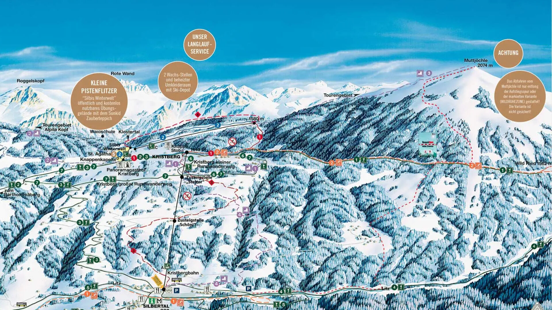 Čtyři upravené sjezdovky v lyžařském středisku Kristberg jsou přehledné. Jelikož středisko není tak přeplněné jako velká lyžařská střediska, vše probíhá bez velkého shonu a spěchu, takže rodiny s dětmi zde nacházejí ideální podmínky. Obtížnost sjezdovek sahá od lehké (modré sjezdovky) po střední (červené sjezdovky). Kdo nemá dostatečnou celkovou délku sjezdovek, nejlépe využije přímé napojení na lyžařské středisko Silvretta Montafon s jeho zhruba 140 kilometry sjezdovek, aby si užil ještě více lyžařské zábavy.