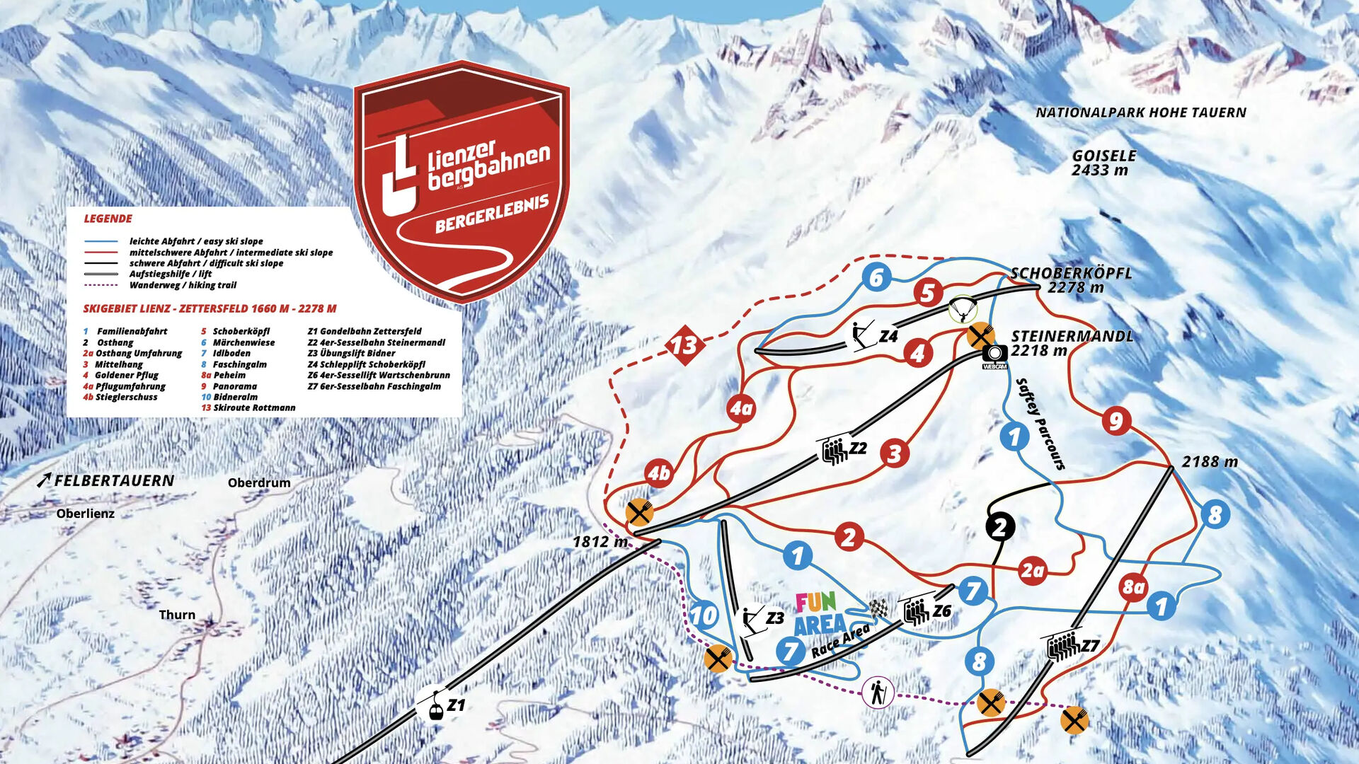Sjezdovky na Zettersfeldu jsou obzvláště vhodné pro rodiny a začátečníky, zde se nachází mnoho modrých a červených sjezdovek a dětský park. Lyžařské středisko sahá až do výšky 2 278 metrů a je tak poměrně sněhově jisté. Snowpark lyžařského střediska Lienzer Bergbahnen se nachází také na Zettersfeldu. Sunsite Park leží u sedačkové lanovky Steinermandl a disponuje různými překážkami.