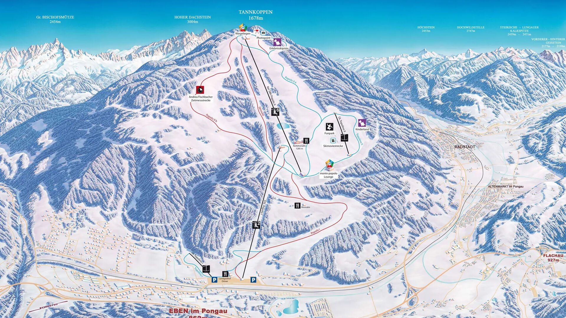 Lyžařský vrch "Monte Popolo" patří do lyžařského střediska Eben im Pongau v Salcbursku, uprostřed Rakouska. Lyžařský vrch nabízí s 6 kilometry sjezdovek ideální cvičnou plochu pro děti a začátečníky. Snadné až středně obtížné sjezdovky umožňují rychlý pokrok v učení. Začátečníky podporuje místní lyžařská škola.
