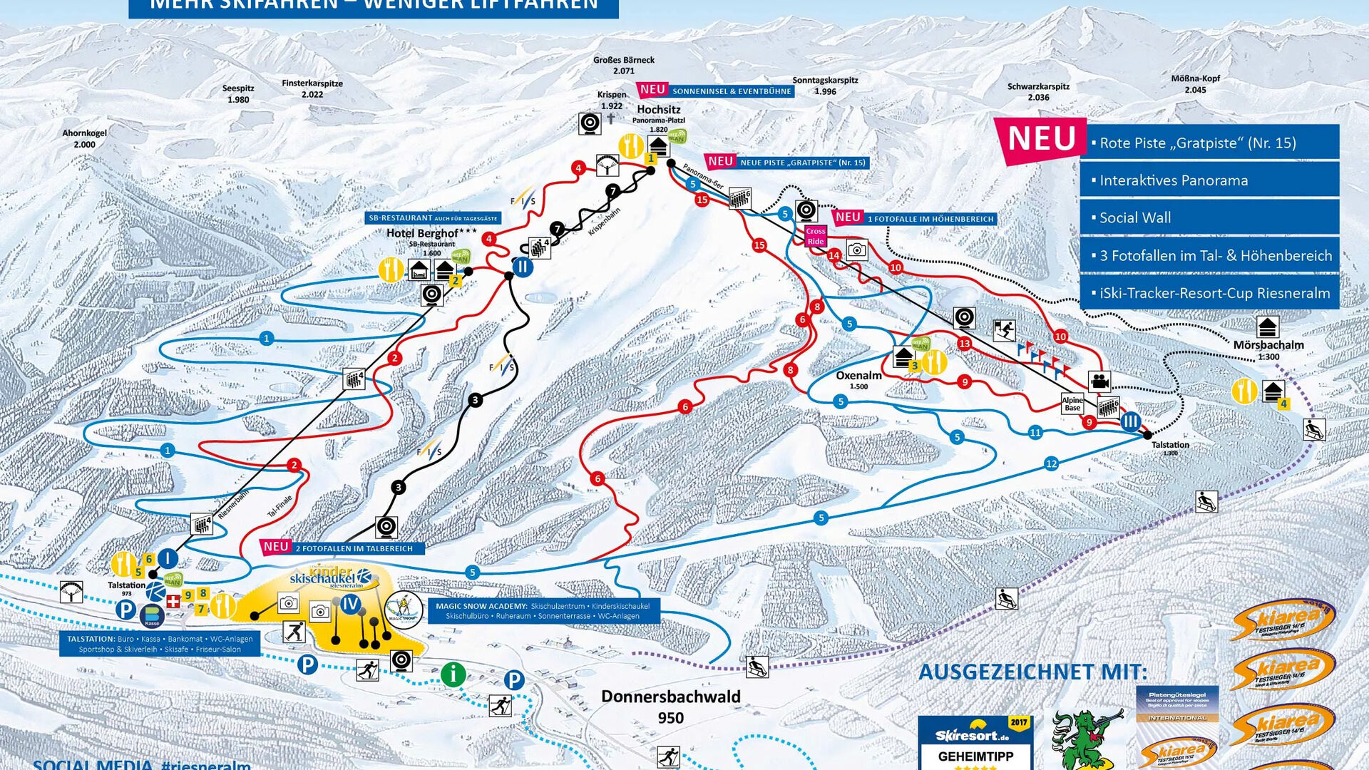 S pestrou nabídkou sjezdovek v barvách modré, červené a černé si zde každý najde to své. Panoramatická sjezdovka měří 7 km a závodní trať Evropského poháru, kde slavili úspěchy i hvězdy jako Benjamin Raich, byla již zařazena mezi 10 nejlepších sjezdovek v Rakousku. Riesneralm jako první lyžařské středisko ve Štýrsku navíc získalo "Mezinárodní pečeť kvality sjezdovek".