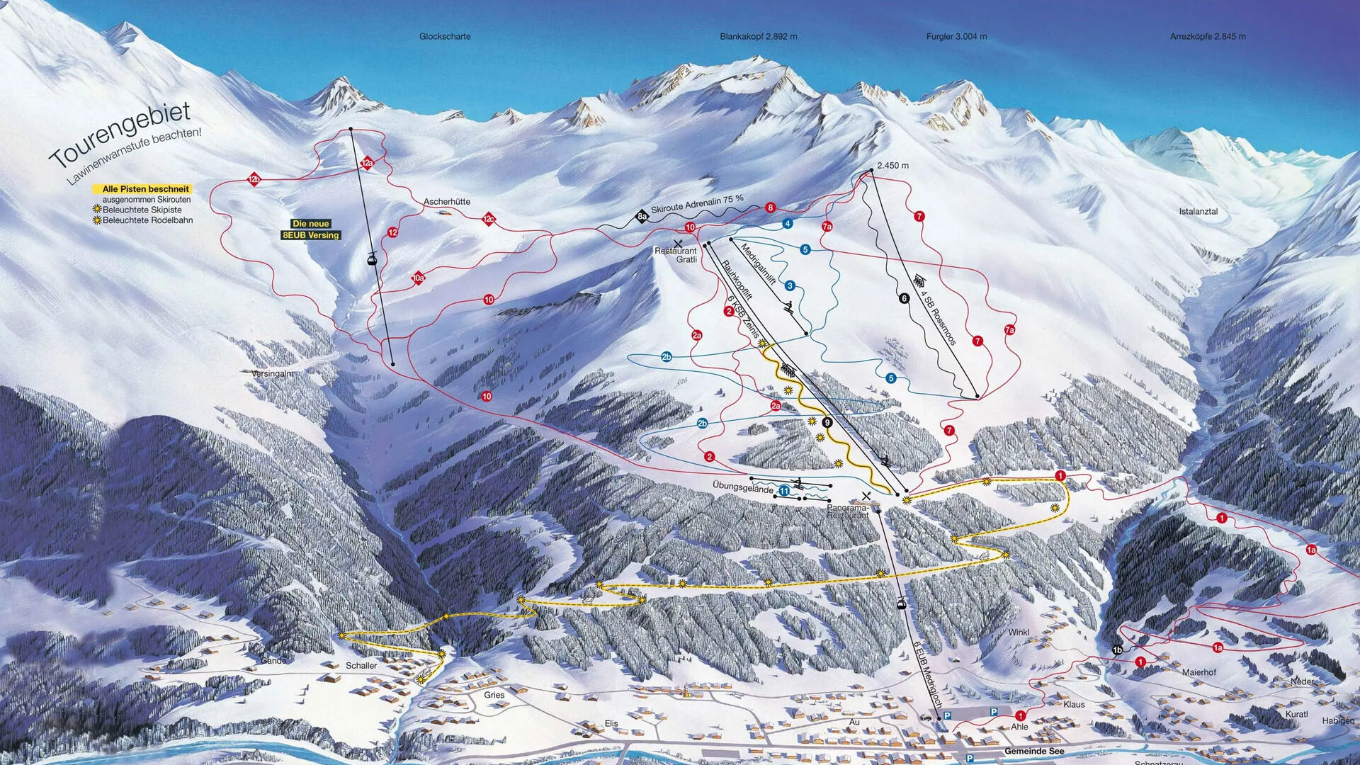 See leží na začátku údolí Paznaun a se svými 1 700 lůžky je skvělým místem pro rodinnou dovolenou a dobrou alternativou k jiným, přeplněným lyžařským střediskům. V lyžařském areálu čeká na milovníky zimních sportů 42,5 kilometrů upravených sjezdovek a devět moderních lanovek. Díky nadmořské výšce až 2 450 metrů není problém se sněhovou jistotou až do jara.
