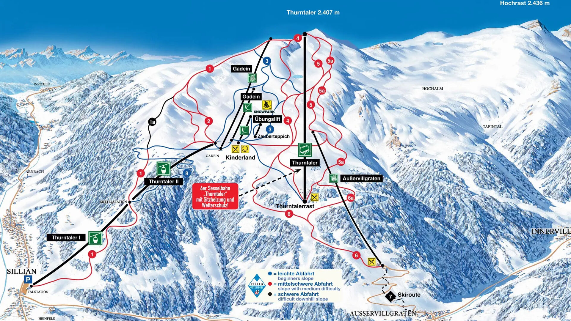 Na Thurntaleru, domácím kopci Sillanu, naleznou zimní sportovci přibližně 22 kilometrů upravených sjezdovek v nadmořské výšce od 1 100 do 2 400 metrů a sedm vleků. Díky největšímu zasněžovacímu zařízení v Osttirolu není v lyžařském středisku po celou zimu problém se sněhovou jistotou. Dokonce i obě údolní sjezdy do Sillanu a Ausservillgraten jsou zasněžovány