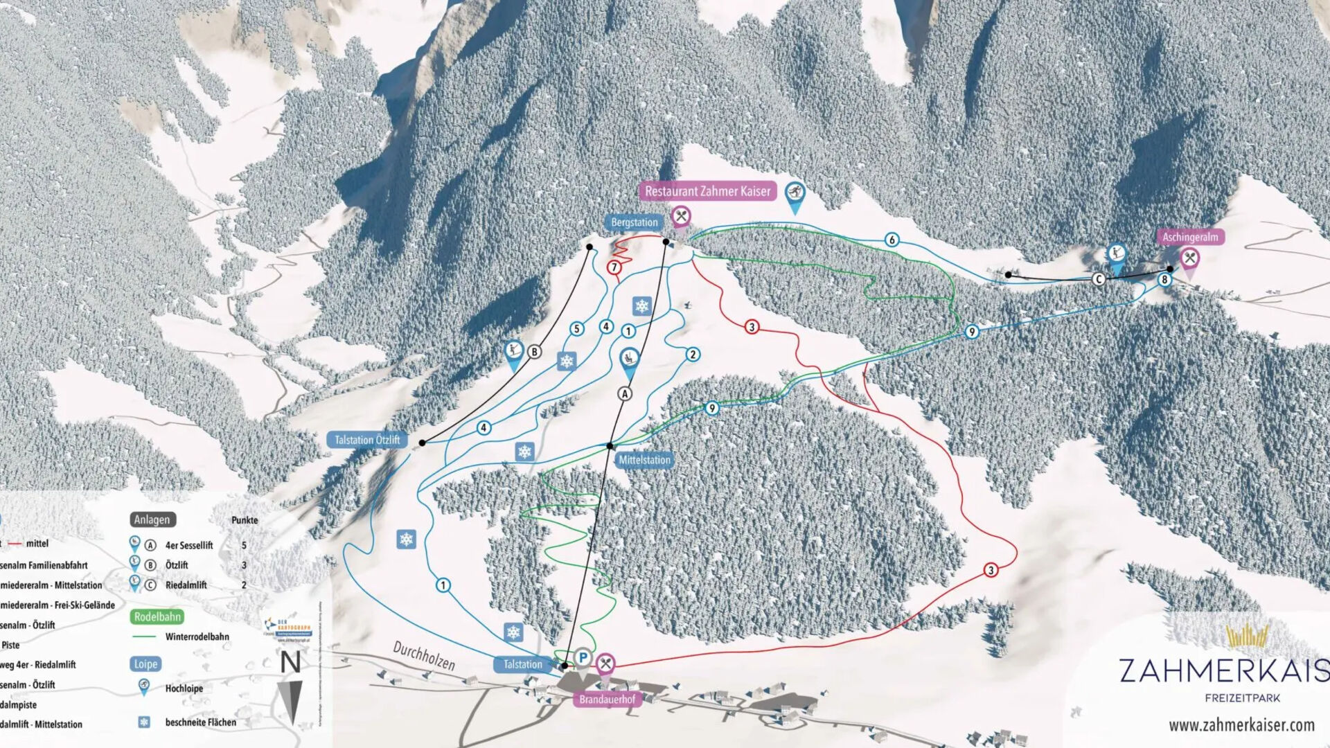 V lyžařském areálu Zahmer Kaiser si můžete zalyžovat, pokud budete ubytováni v oblasti Hohe Salve / Wilder Kaiser - Brixental.