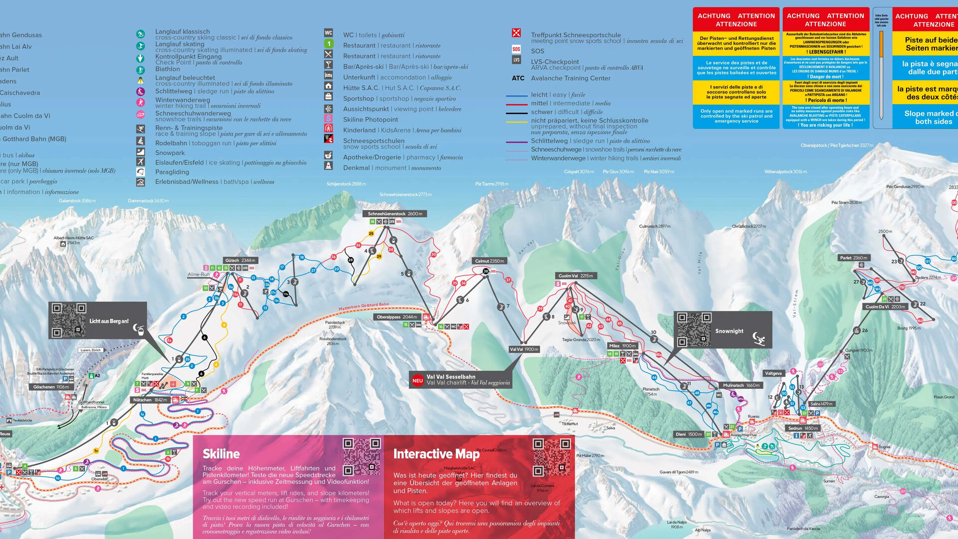 V lyžařském areálu je k dispozici také řada tras pro túry na sněžnicích nebo pro běžné zimní procházky, navíc si můžete v Göschenenu vyzkoušet lezení po ledových stěnách, pobavit se na kluzišti v Andermattu, Sedrunu a Disentisu nebo se svezte na saních po jedné z mnoha sjezdovek.